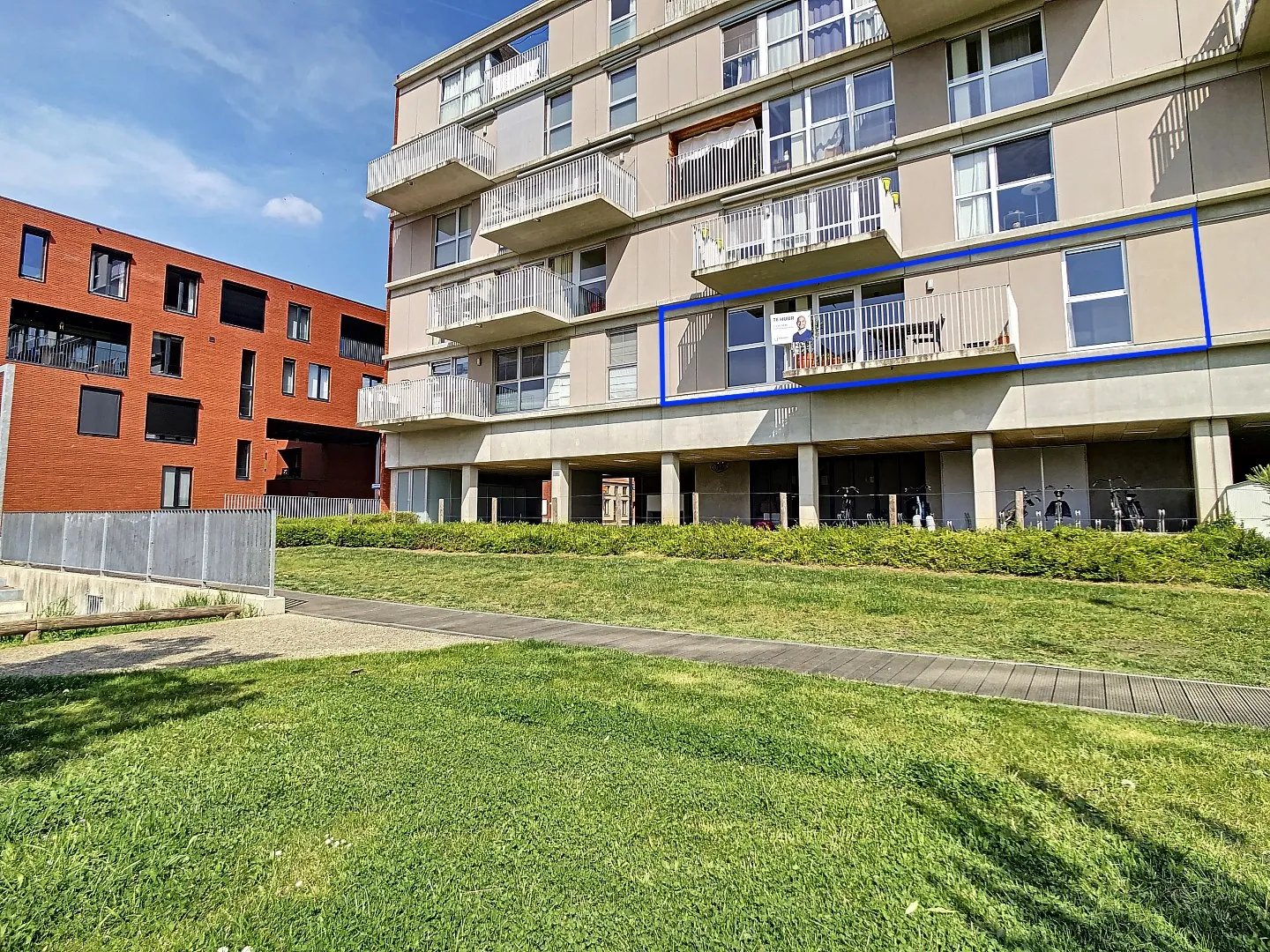 Dit appartement omvat een inkomhal met vestiairekast en gastentoilet, verder vinden we een grote lichtrijke leefruimte met volledig uitgeruste open keuken (vaatwasser, frigo en vriezer, inductievuur) en aansluitend een berging met aansluiting voor wasmachine een droogkast. De leefruimte geeft uit op het westelijk georiënteerd terras van 9 m². Verder heeft dit appartement een ruime slaapkamer met aansluitende badkamer.