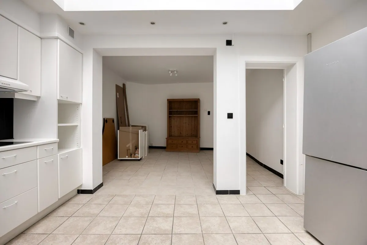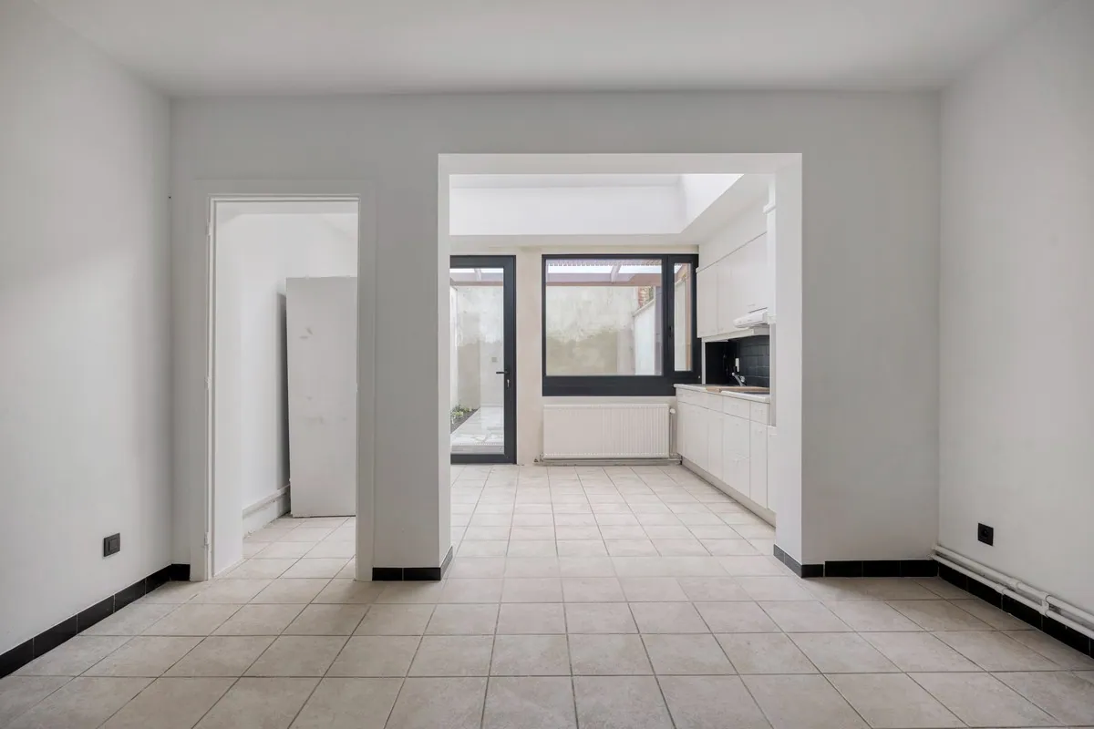 Deze woning heeft een ruime leefruimte, verder is er een ruime en lichtrijke eenplaats met open en geïnstalleerde keuken. De keuken geeft toegang tot het terras. Op de gelijkvloers verdieping vinden we ook nog een apart toilet.