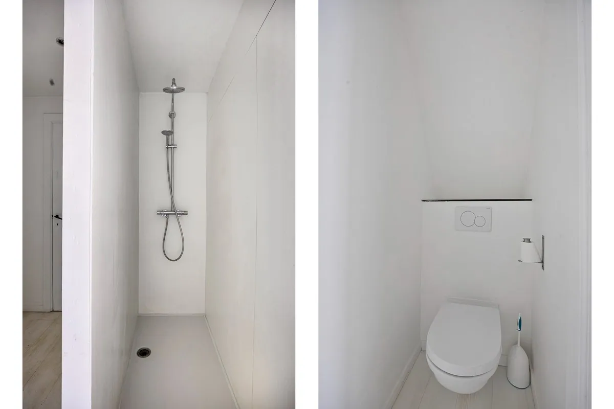 Op de 2de verdieping vinden we nogmaals 2 ruime slaapkamers en een 2de douchekamer met inloopdouche, lavabo en toilet.