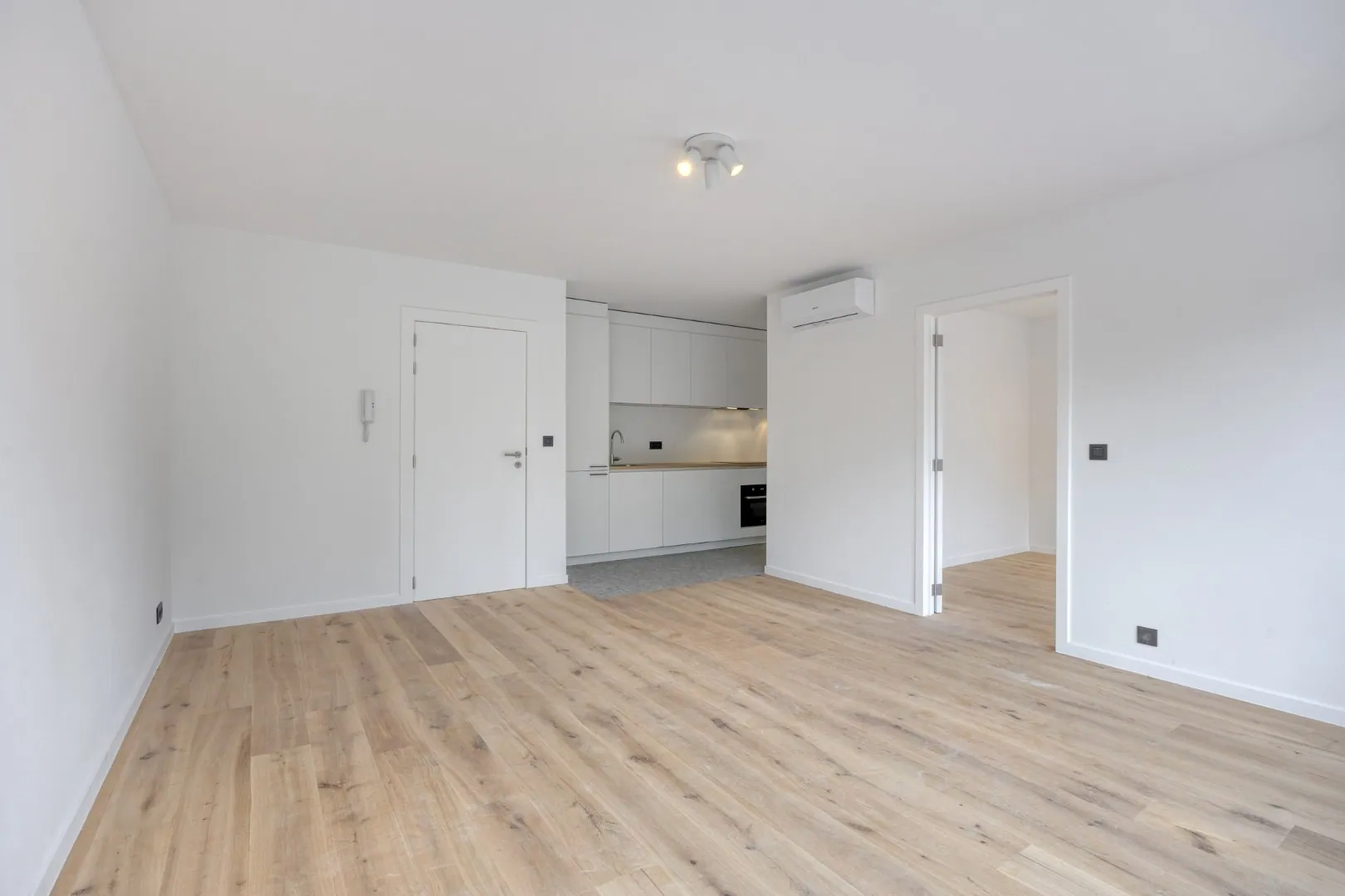 Het appartementen bestaan uit een leefruimte met open en volledig geïnstalleerde keuken en lichtrijke leefruimte. Verder hebben we een ruime slaapkamer van 12m² en een badkamer met toilet, lavabo en douche.