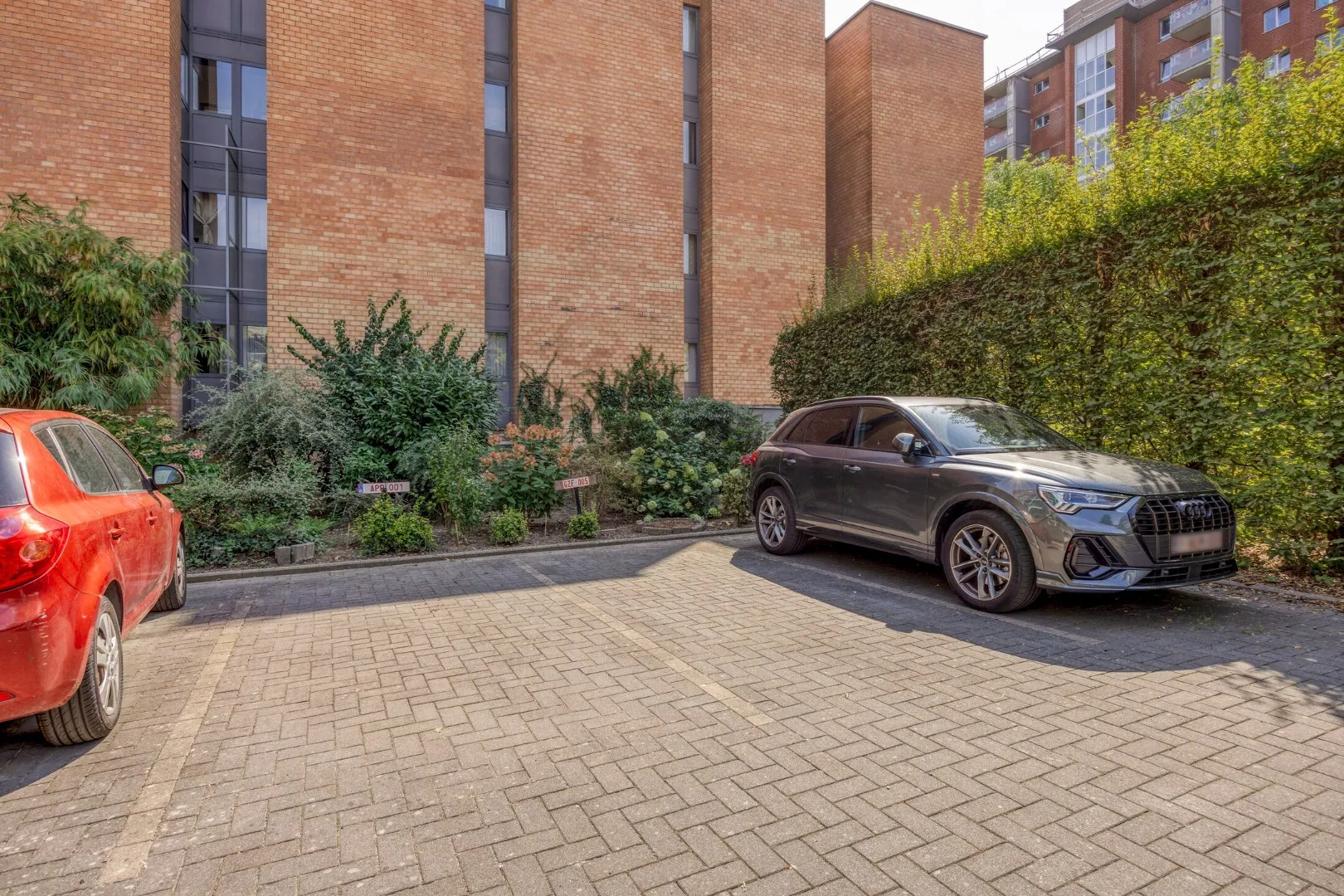 Achteraan het gebouw zijn er 2 autostaanplaatsen en er zijn 2 ruime kelderbergingen op -1 verdieping. Beide kelderbergingen en 1 staanplaats zitten in de prijs inbegrepen. Een 2de staanplaats kan bij aangekocht worden.