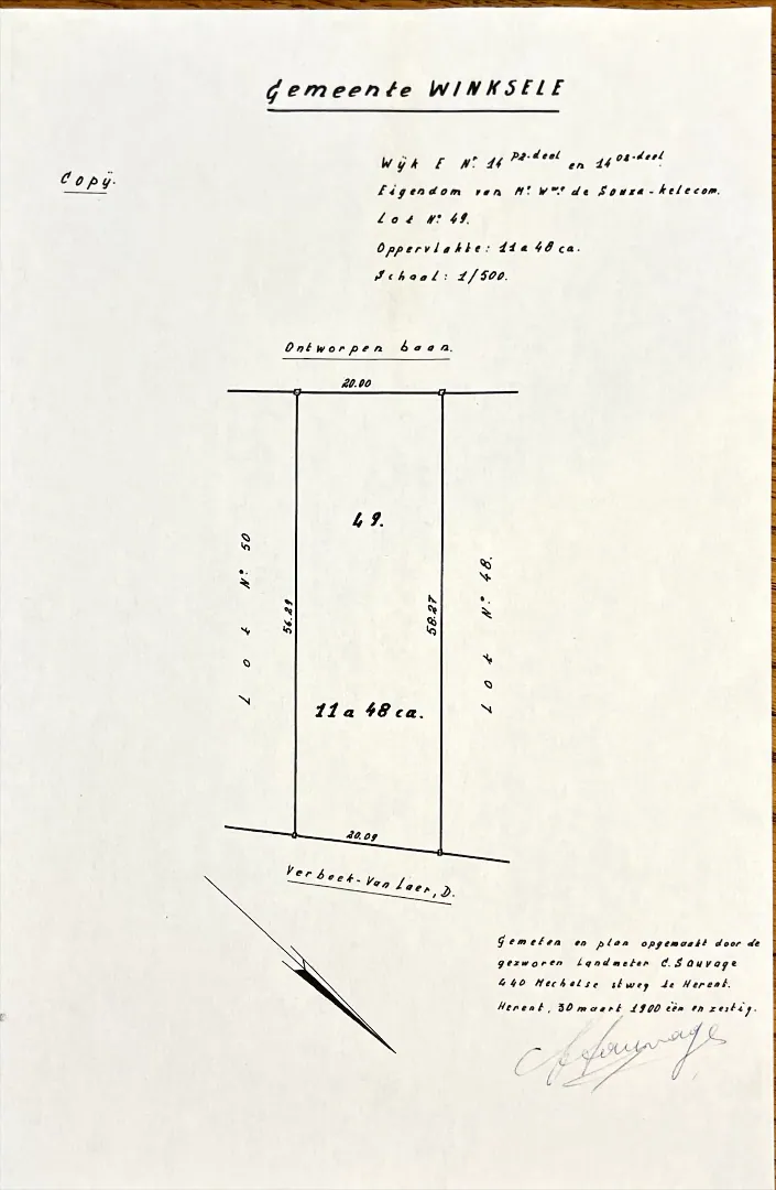 Het perceel heeft een oppervlakte van 11 are 48 centiare, met een straatbreedte van 20 meter en een diepte van 57 meter.