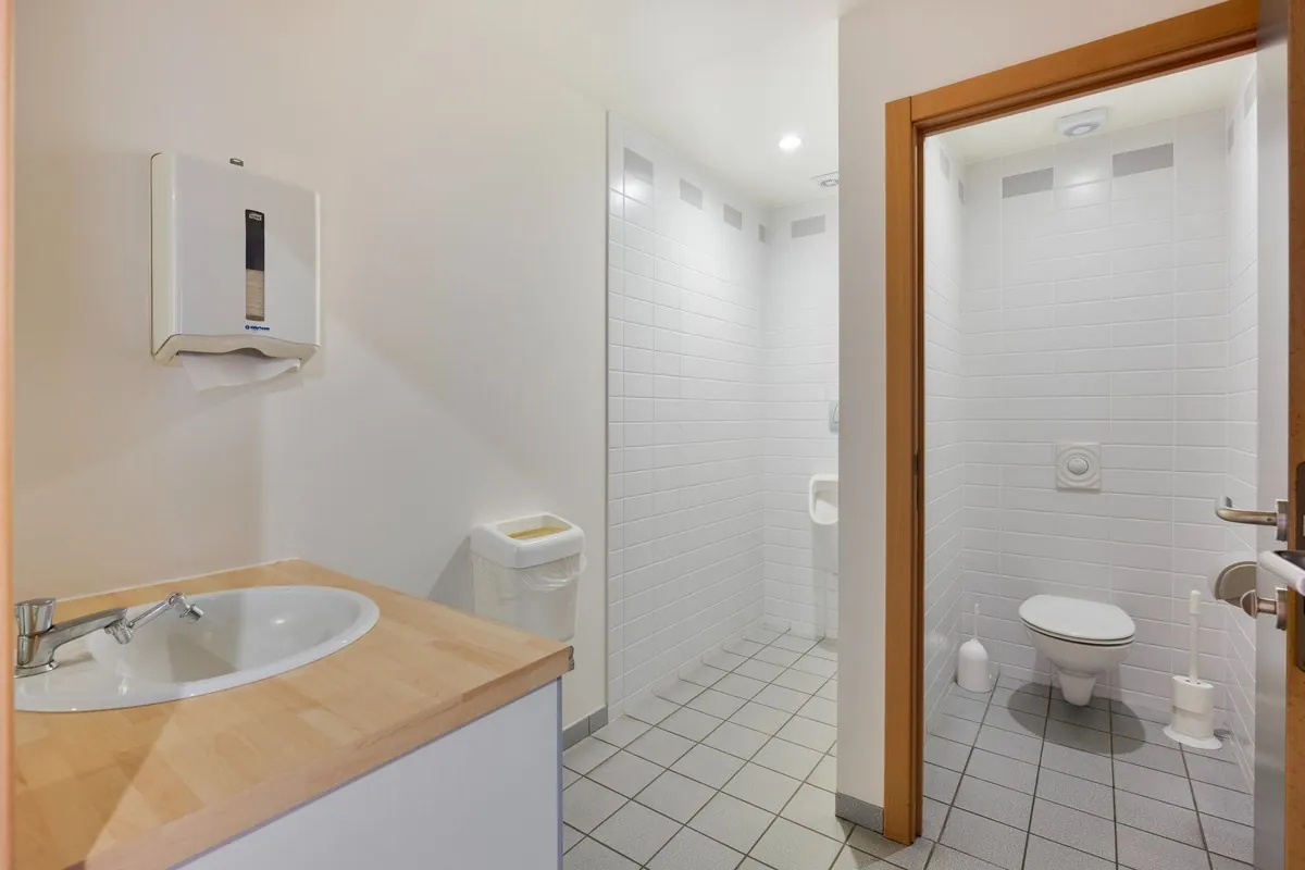 Het kantoor is uitgerust met een energiezuinig systeem dat zowel verwarming als airconditioning voorziet via een moderne warmtepompinstallatie. Daarnaast biedt het ruime terras een extra troef voor een aangename werkomgeving.