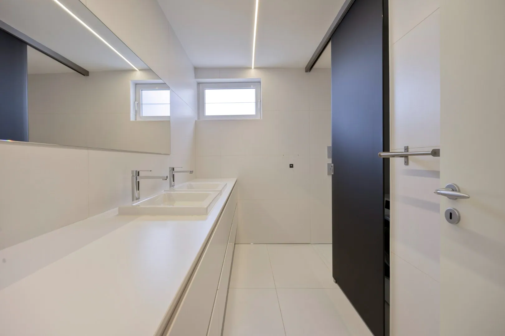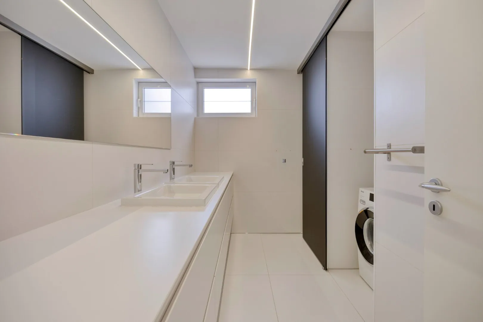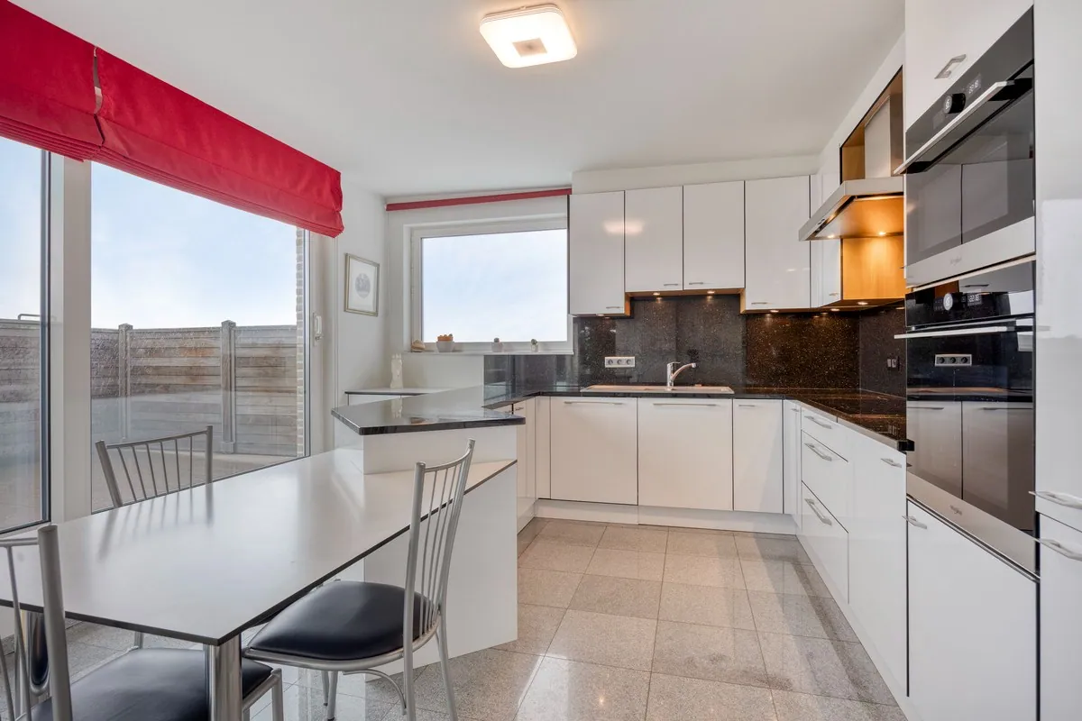 Verder beschikt het appartement over 2 ruime slaapkamers en een badkamer met douche, dubbel lavabo en aansluiting voor wasmachine en droogkast.