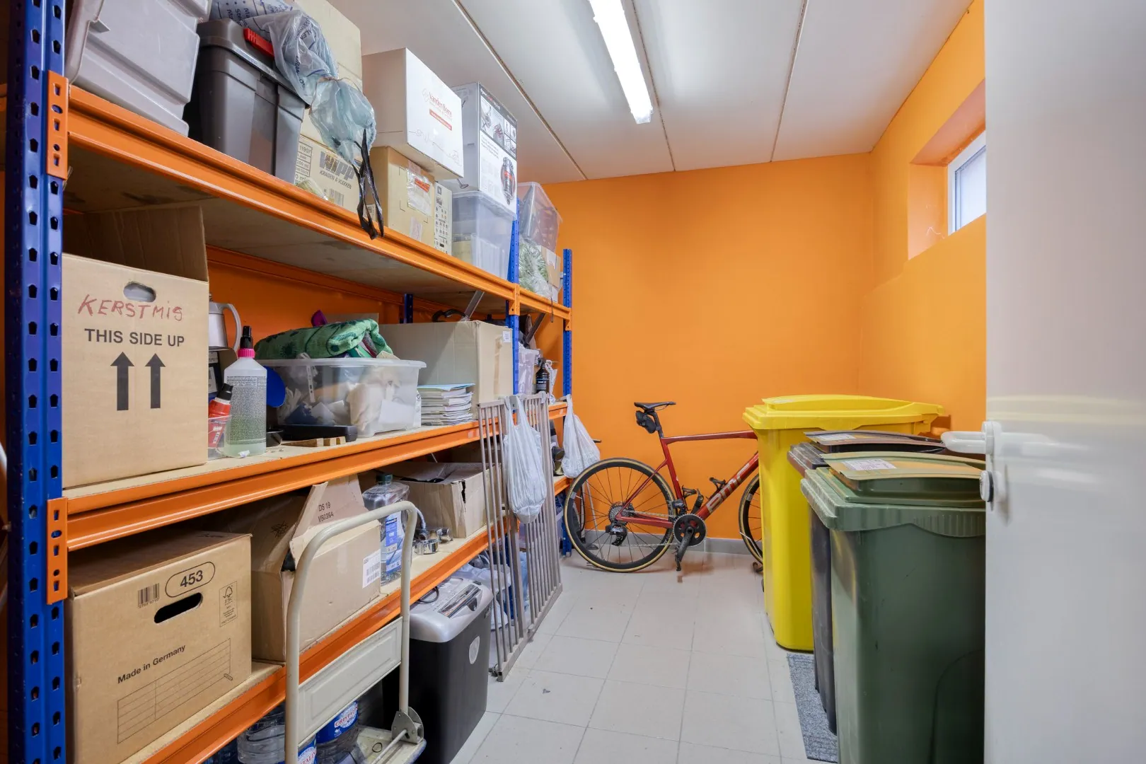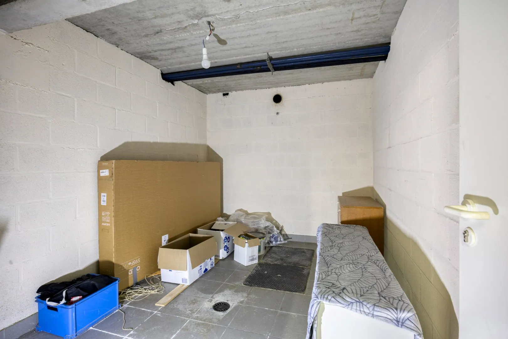 In de kelderverdieping zijn er 4 kelders voor stockage en het plaatsen van fietsen en vuilbakken. Er is ook een garagebox die bij aangekocht dient te worden voor 25.000 euro.