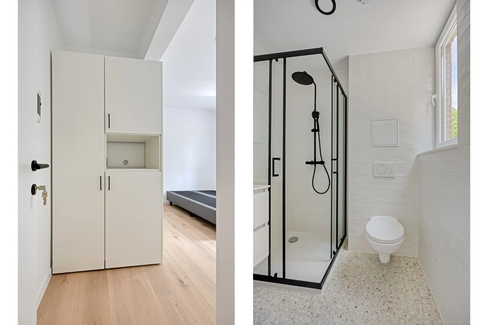 Volledig gerenoveerde studentenkamer in residentie met 29 studentenkamers met eigen sanitair en terras in hartje Leuven - EPC label A!