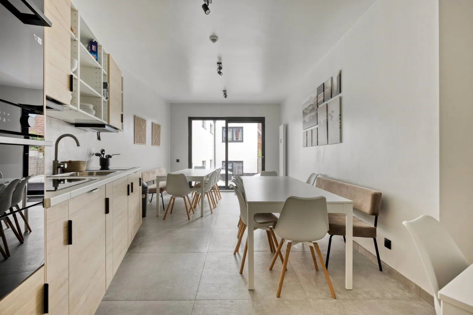 Bijzonder is de ruime gemeenschappelijke fietsenstalling en ruime keukens. Enkele kamers beschikken over een privaat terras.