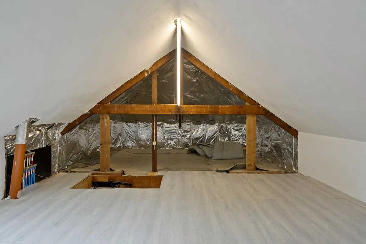 Op de 1ste verdieping vinden we de zolder, die zich uitstrekt over een groot deel van de oppervlakte van de woning met maar liefst 95m²! Deze kan eventueel omgebouwd worden tot extra slaapkamer(s) of kan gebruikt worden als opbergruimte.
