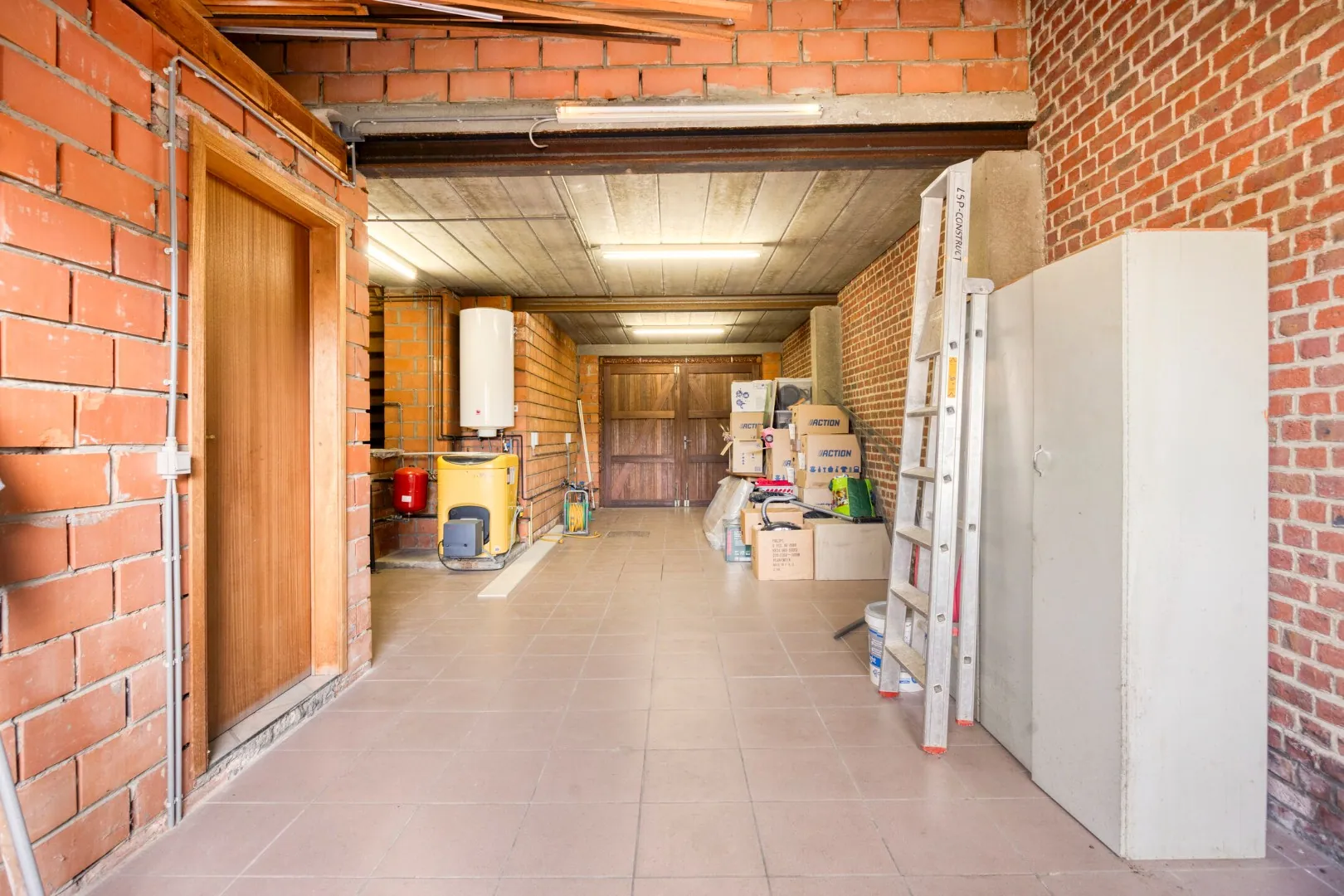 Via deze berging bereiken we de ruime garage van 35m². Via de garage is ook de tuin bereikbaar.