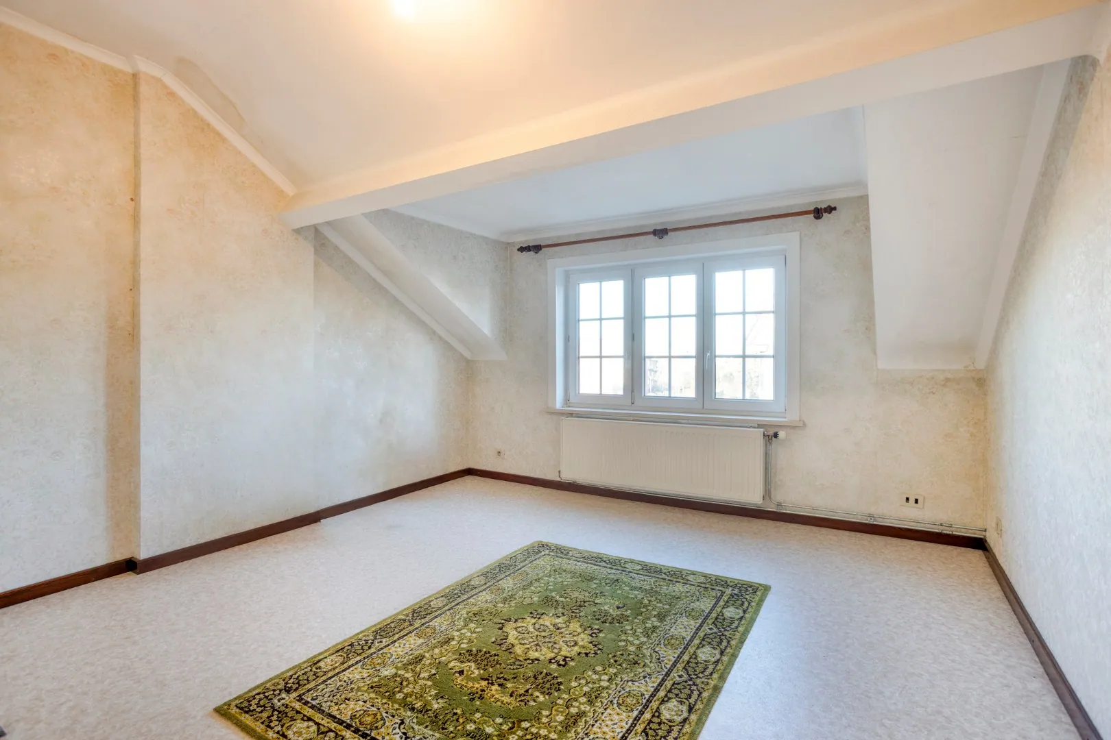 Op de eerste verdieping vinden we 3 ruime slaapkamers (19m², 19,5m² en 11,5m²) en 1 badkamer met bad, toilet en enkele lavabo.
