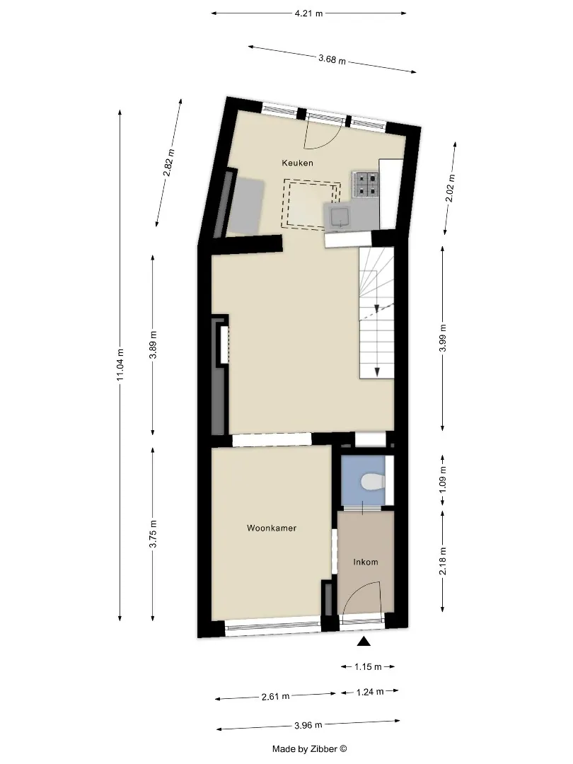 We betreden de woning via de inkomhal met apart gastentoilet. Links van de inkomhal bevindt zich de lichtrijke woonkamer en eetkamer, aansluitend vinden we de keuken. Achter de keuken bevindt zich de buitenruimte die makkelijk gebruikt/omgezet kan worden naar een terras of stadstuin.