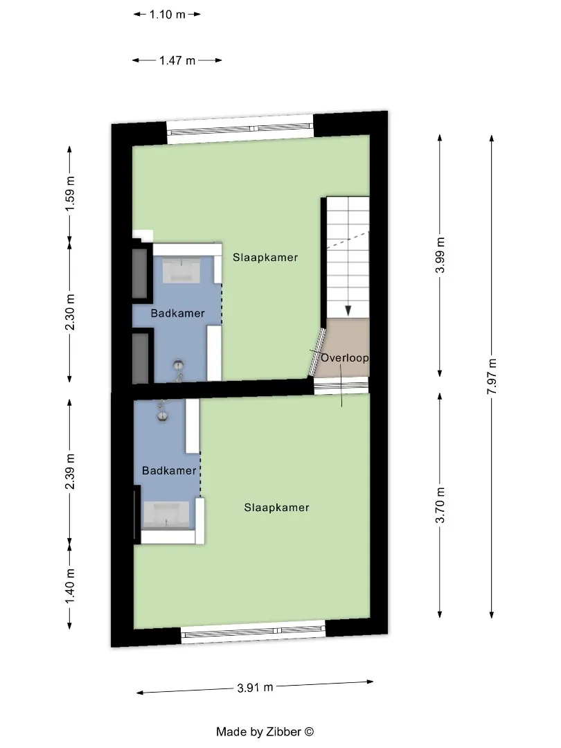 | Slaapkamers: | 2 (15 m², 38 m²) |