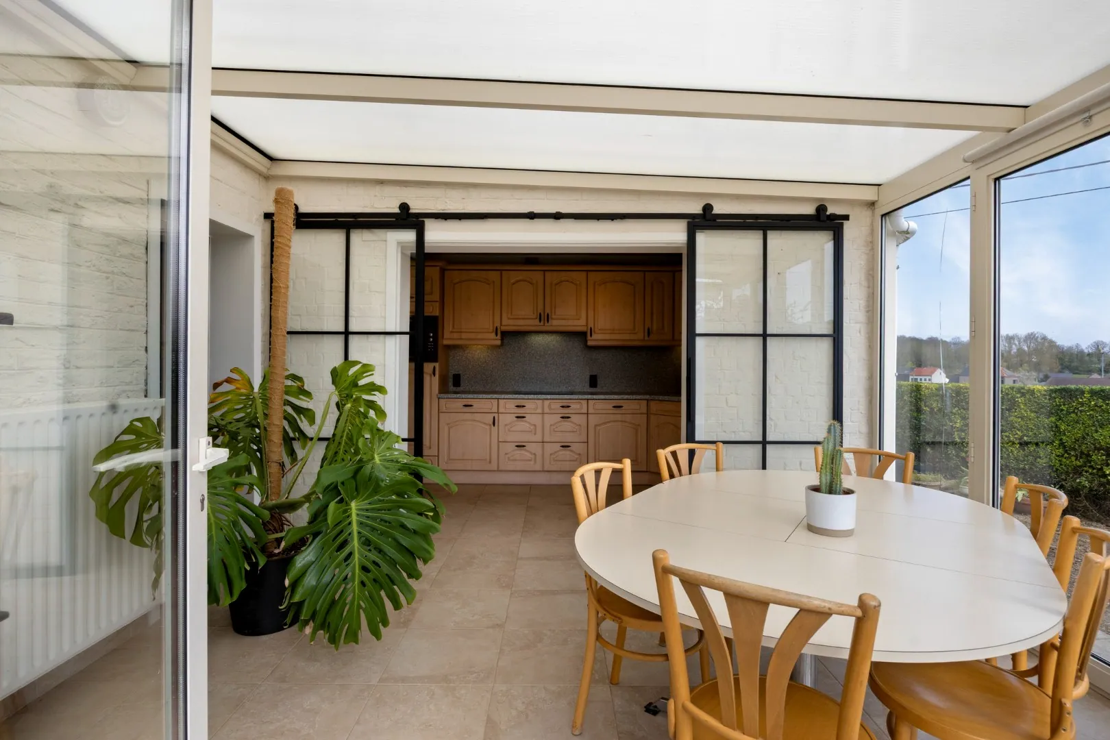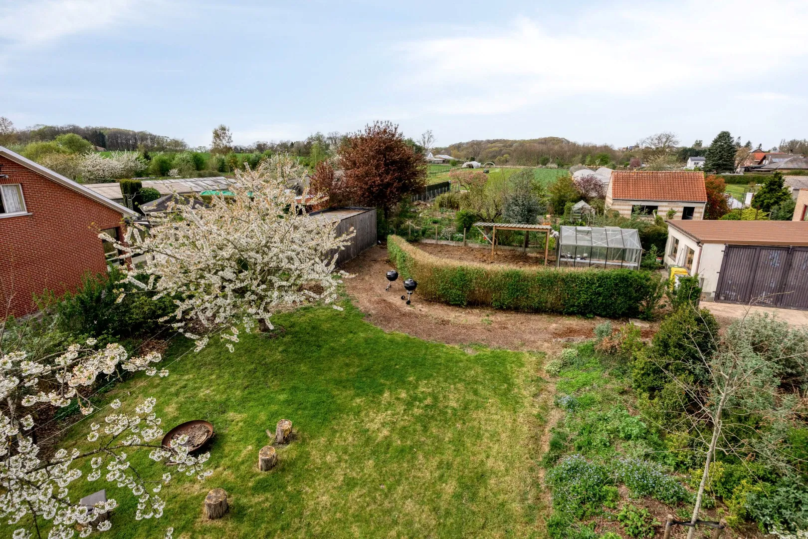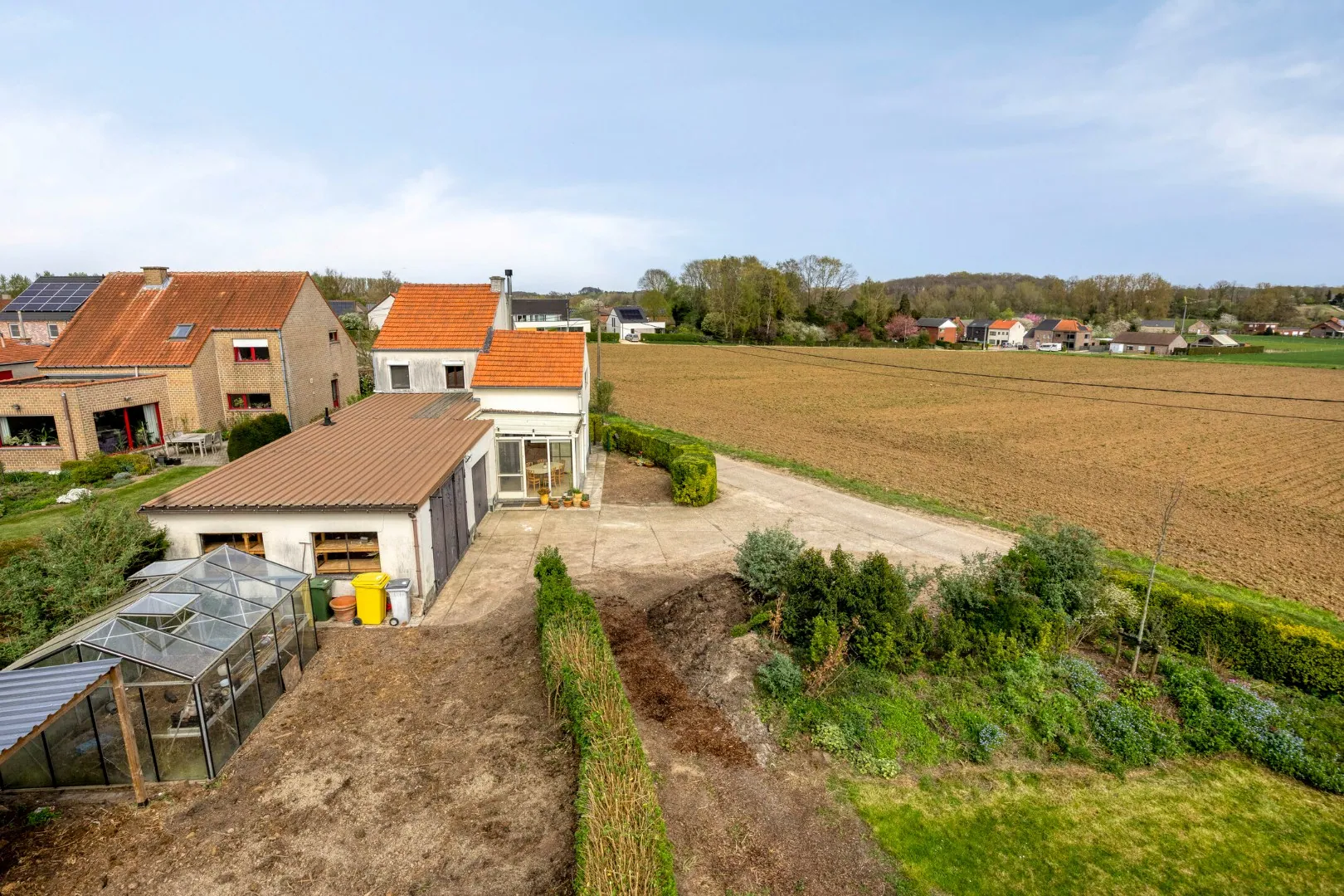 Verder beschikt de woning over een ruime oprit. Achteraan beschikt het pand over een aangename tuin met terras, serre en tuinhuis.