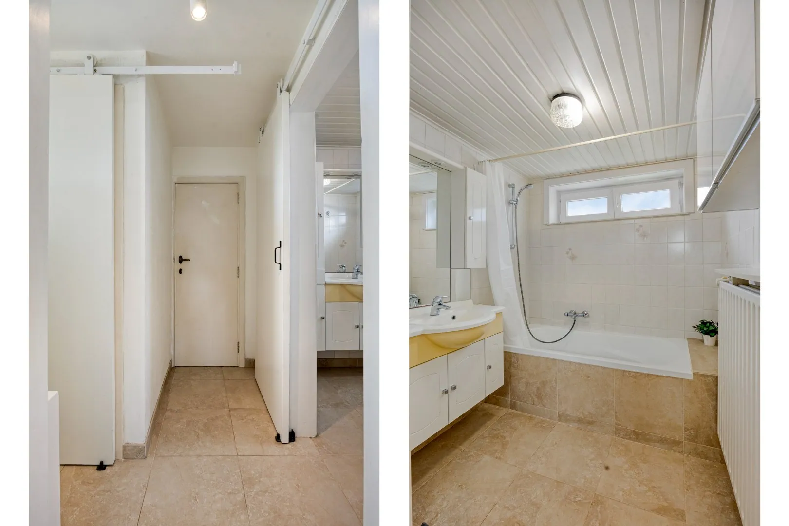 Op de eerste verdieping vinden we 2 ruime slaapkamers (16m², 15m²).